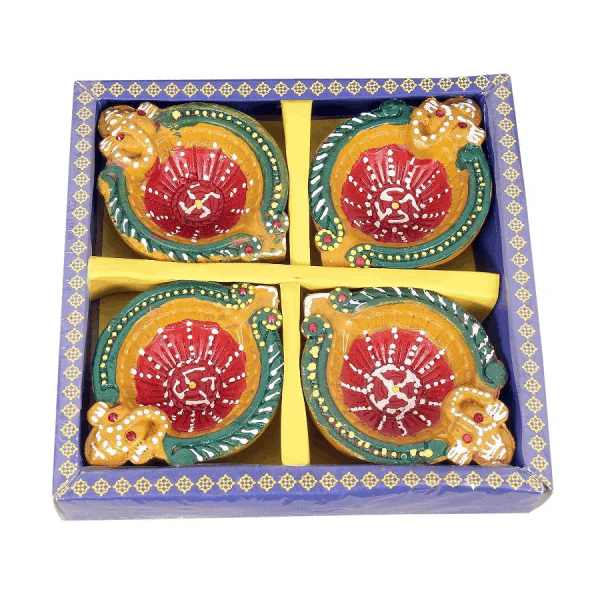 • They are the perfect decor items and ideal gifts for Diwali. Let your world be illuminated by our vivacious collection of diyas decorated with beautiful colours and glitters.
