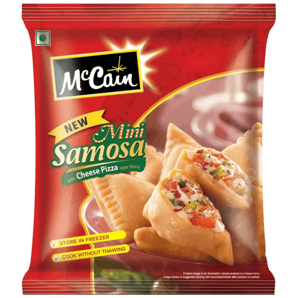 • Mini Frozen samosas with Pizza Cheese filling. The only desire that we at McCain have is to make sure that you get the best tasting snacks to fill your heart and your tummy! We love to put our heads and hearts together to ensure that you get delicious and delectable food in every mouthful that you have.