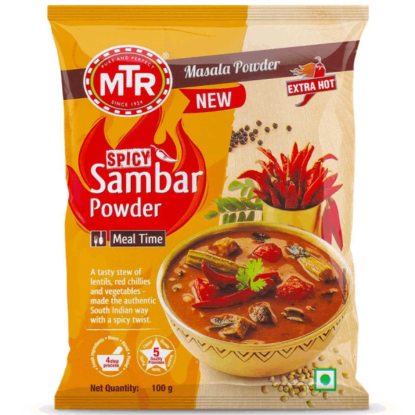 • Coriander, Red Chilli, Red Gram Dal, Bengal Gram Dal, Salt Turmeric, Fenugreek, Cumin, Black Gram, Spicy Extract, Black Pepper, Mustard, Curry Leaves, Ginger & Asafoetida