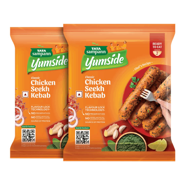 PACK CONTENT: This pack contains 6 pieces of Tata Sampann Yumside Classic Chicken Seekh Kebab