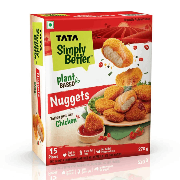 Going plant-based for your chicken cravings is a huge change. To let you enjoy your favourite chicken-like meal on any day of the week - even on the vegetarian days, Tata Simply Better™ brings to you a plant-powered range of chicken recipes. Discover the nutritional goodness and fabulous chicken-like taste of our plant-based products that have unbeatable texture, flavour, crunch, and juiciness just like real chicken. It’s all real, and it comes from plants. It isn’t simply good - it’s Tata Simply Better™. Loaded with proteins, these plant-based chicken nuggets are trans-fat-free with no added preservatives that make them nutritionally rich.